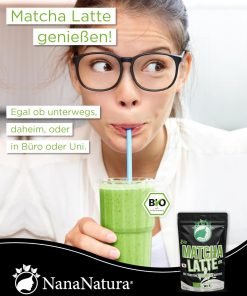 Nous sommes fiers de vous proposer un Matcha Latte bio de qualité supérieure, préparé en 10 secondes par NanaNatura! Il est idéal pour la maison, le bureau ou les voyages.