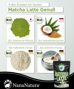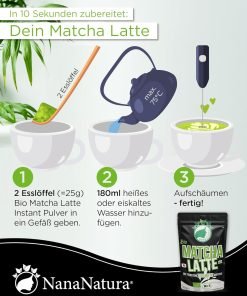 Découvrez le NanaNatura’s Instant Bio Matcha Latte en Poudre BIO avec Matcha de Cérémonie du Japon 250 g – à déguster chaud ou froid