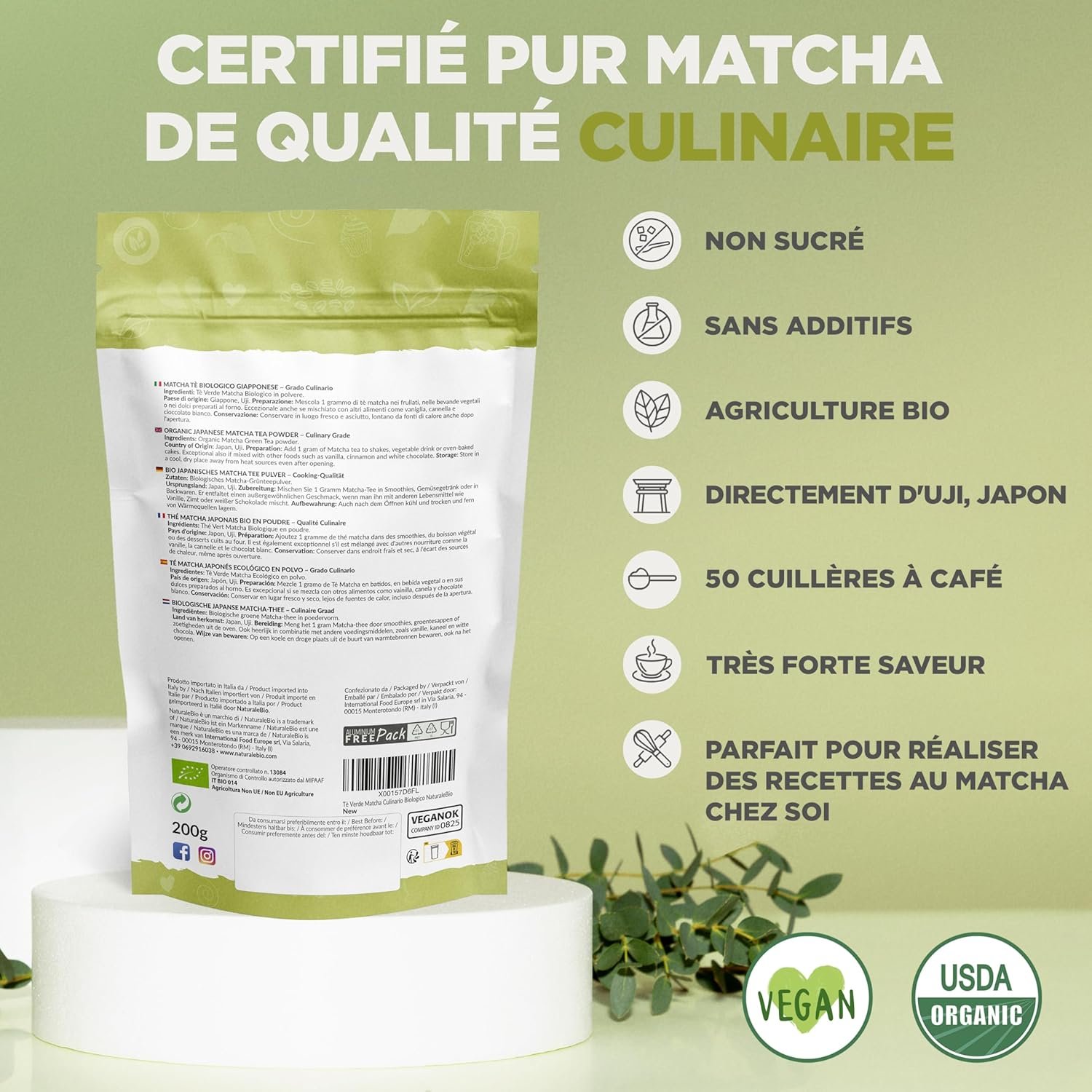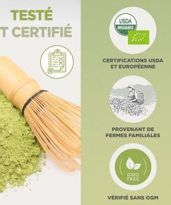 Pur, Bio et Naturel : Notre poudre de thé vert matcha est 100% exempte de tous sucres ajoutés, colorants ou conservateurs. Appréciez votre thé vert bio matcha comme les gens le font depuis des siècles.