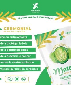 Faites l’expérience unique du thé matcha japonais, considéré comme l’une des plus hautes qualités au monde. Nous vous offrons une poudre 100% naturelle, issue des meilleures cultures de thé du Japon, garantissant une saveur sublime et un aroma incomparable. Le thé matcha cerémonial Grade CEREMONIAL que nous proposons pèse 50 grammes et est inclus avec une jolie cuillère en bambou pour faciliter la préparation de votre thé.