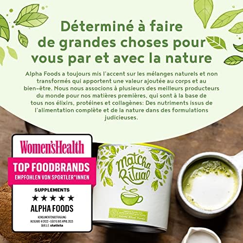 Découvrez le Matcha Ritual – Latte au thé vert Matcha enrichi en lait de coco, agropyre et herbe d’orge – Matcha de qualité supérieure pour la cérémonie du thé japonaise – 210 g de poudre