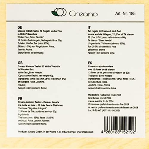 Découvrez le Creano Coffret Cadeau Floraison Thélini dans une Boîte à Thé en Bois | 12 Thés Fleuris dans 4 Sortes (Thé blanc)