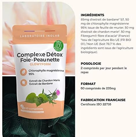 Découvrez le Complexe Detox, Peau Nette | Chlorophylle + Chardon Marie bio + Bardane bio + Fibres Prébiotiques Bio | Détox Foie, Digestion, Peau Lumineuse, Acné | Sans Additifs