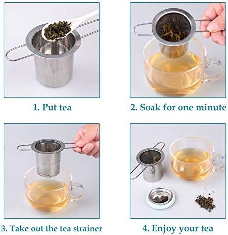 Découvrez le Fenshine – Infuseur à thé en acier inoxydable avec poignée pliable, filtre à thé en maille extra fine avec couvercle pour thé en vrac (bleu clair)