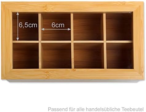 Découvrez le Gräfenstayn® Boîte à thé en Bambou (9 x 28 x 16cm) avec 8 Compartiments, Couvercle à charnière avec fenêtre et idéal pour la Protection des arômes