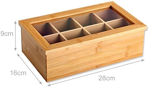 Cette boîte à thé en bambou est l’ajout parfait à votre cuisine. Élégante et pratique, elle peut contenir jusqu’à 8 types de thés différents dans des compartiments séparés pour éviter la contamination des saveurs. Sa fenêtre en acrylique transparente permet de voir facilement votre collection de thé sans ouvrir la boîte pour préserver les arômes.