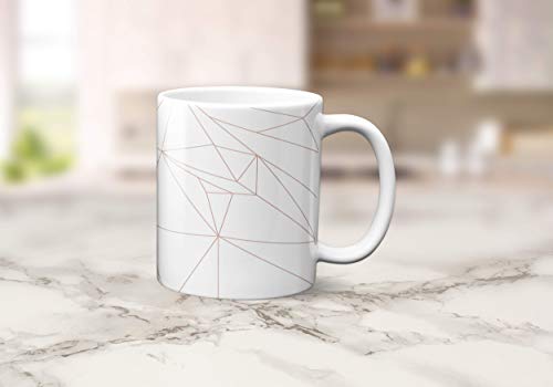 Notre mug blanc avec un design de lignes géométriques en or rose est conçu avec une qualité supérieure pour durer longtemps et pour résister au lavage.