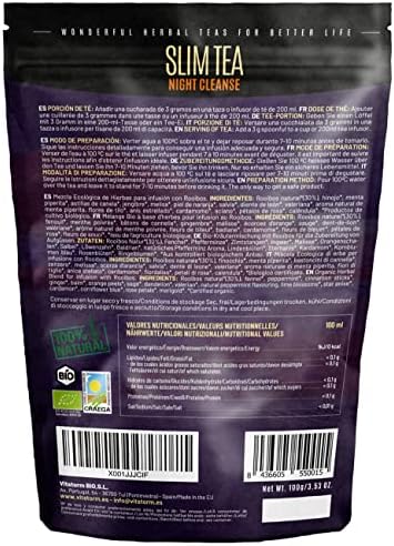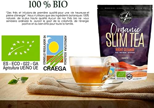 Découvrez le SLIM TEA Night Cleanse – Bio – Tisane Detox – Thé relaxant Anti Stress – Digestion – Anti Ballonnements – Rooibos, Valériane, Fenouil, Badiane, Pissenlit, Cardamome, Infusion en Vrac 100g – VITSTORM