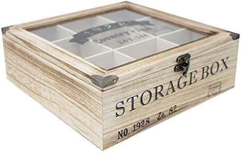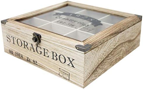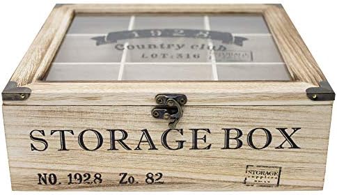 Découvrez le ToCi Boîte à thé en bois rectangulaire (6 compartiments) ou carrée (9 compartiments) Style rétro, Bois, Modèle 2, 9 Fächer